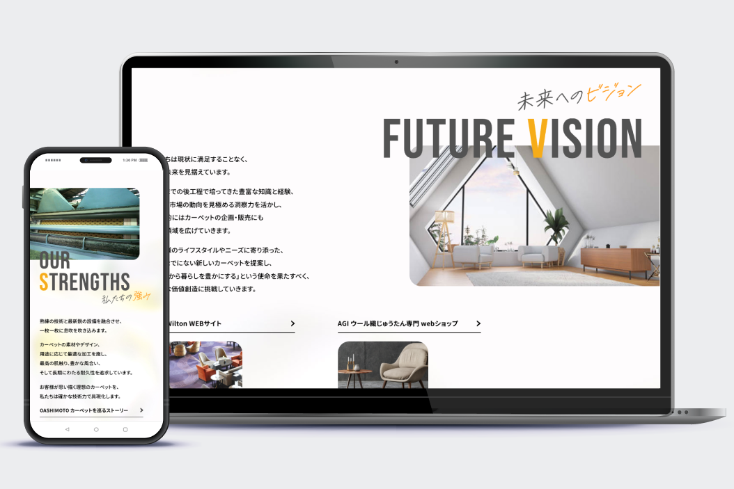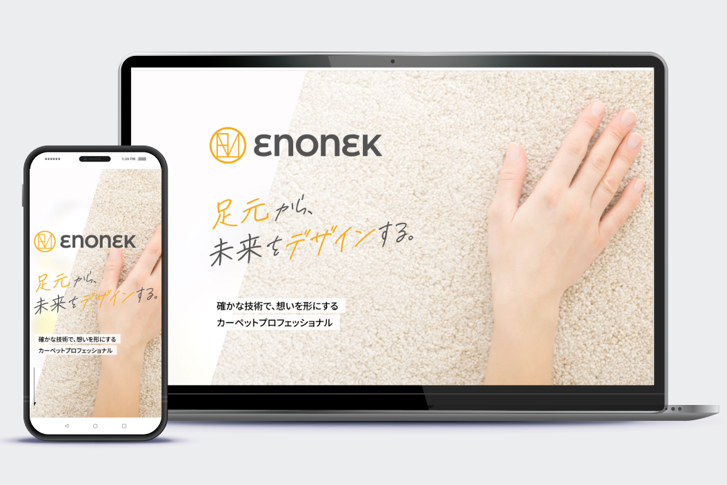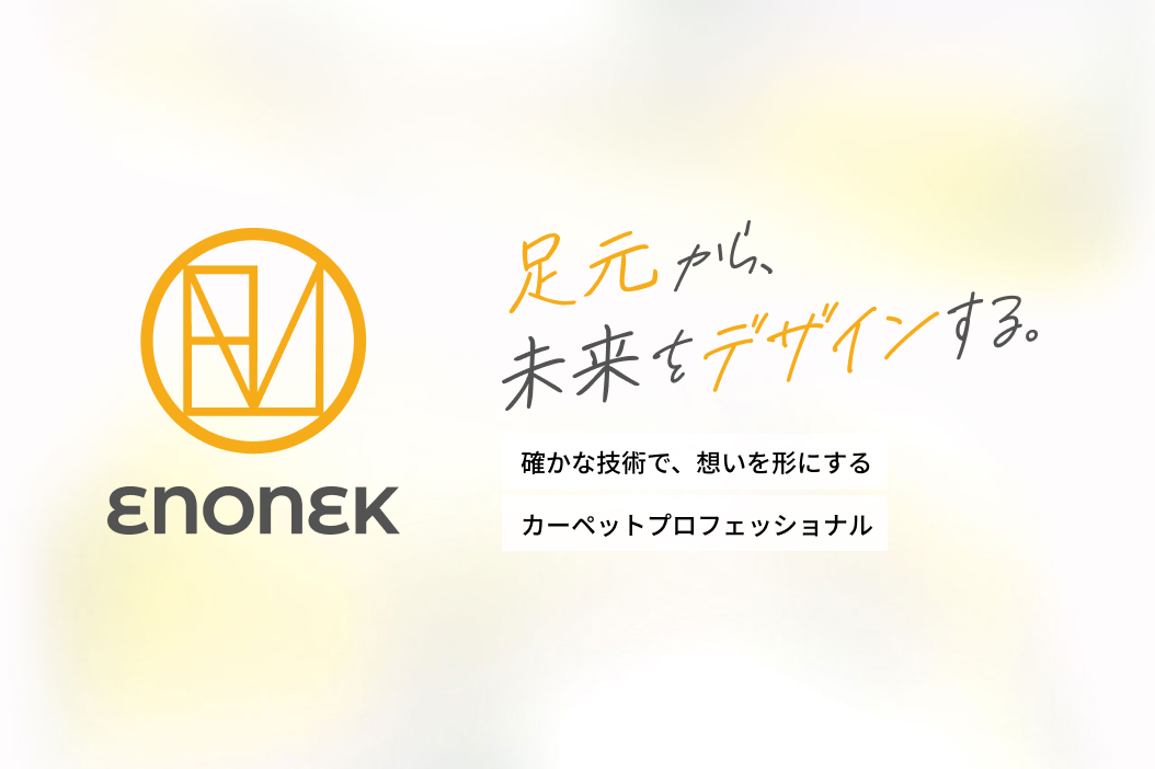 「足元から、未来をデザインする。」確かな技術で、想いを形にするカーペット製造のプロフェッショナル、エノネック様。WEBサイトやロゴマークのデザインとサーバーなどバックグラウンドの担当をさせていただきました。ブランディング全般のディレクションは、株式会社オーケイブランド様。